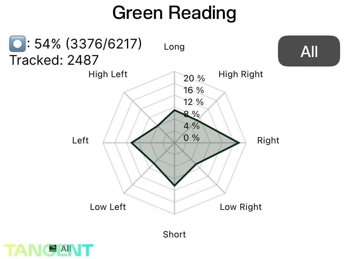 Tangent statistics prove that I am already a good putter, while the recent putter reviews and SAM fittings prove that my stroke is consistent and repeatable. So, if I want to improve at putting, it surely comes down to pace and line, which are ultimately determined by how well I read the green. Padraig Harrington will tell you that the biggest fault with most amateurs is that we under-read the break.