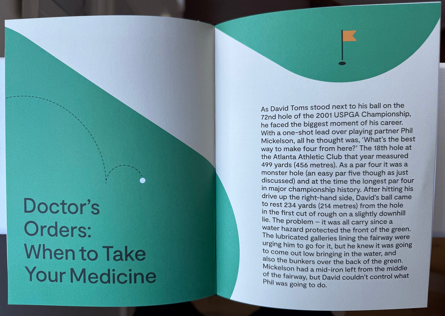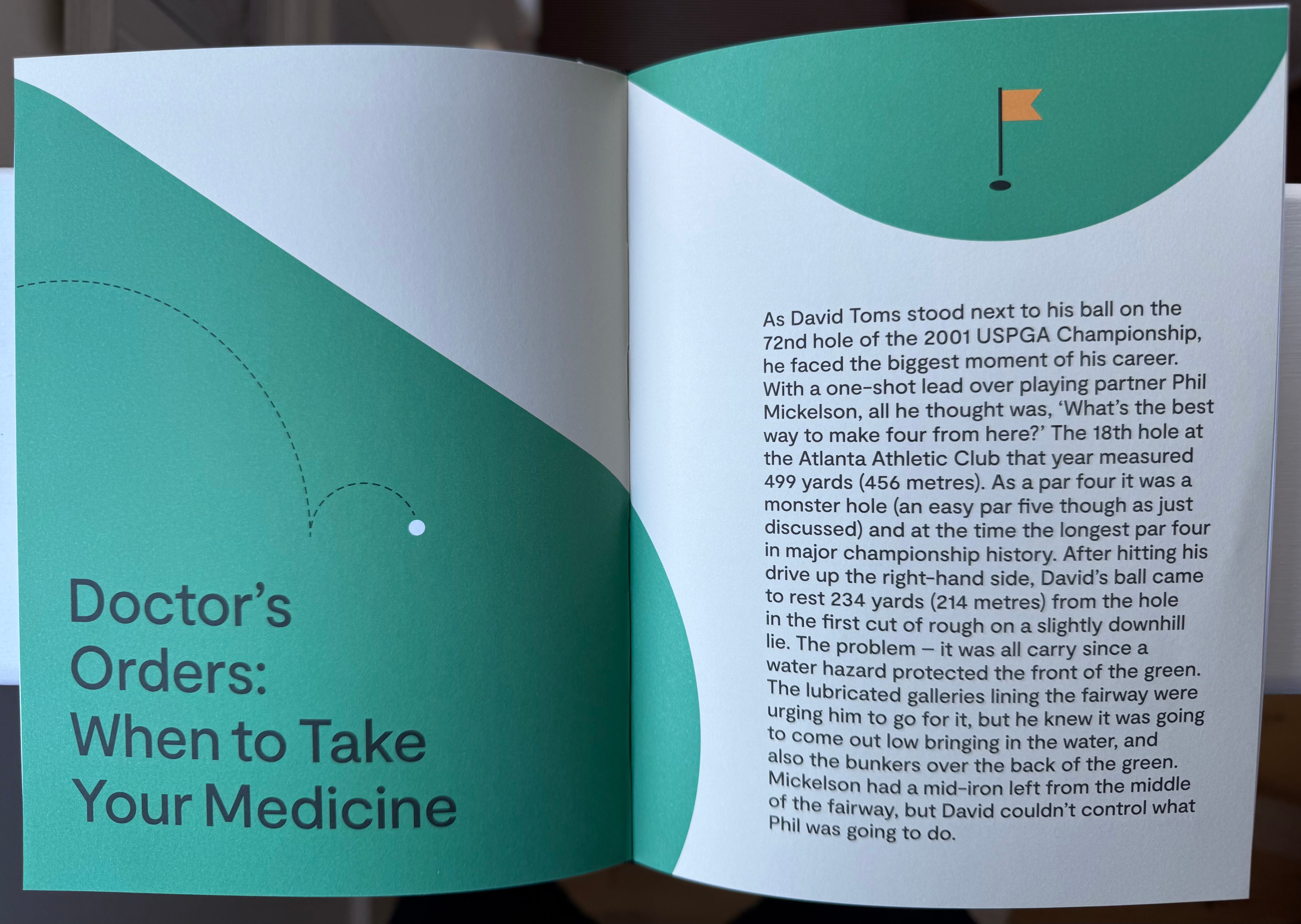 Instead of chasing technical fixes, the book encourages you to play smarter with the game you already have. That alone will resonate with anyone who’s ever striped it on the range and then wondered where it all went wrong on the course. It certainly resonates with me as it’s something I committed to doing last season and let slip as the year went on, chasing technique over just getting the ball in the hole in the fewest shots. I finished the year playing golf “swing” rather than just playing golf!