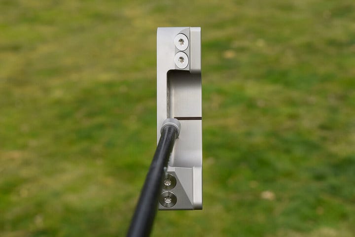Essentially, it looked like Odyssey just needed to get to market quickly, so they took their most successful putters - the Jailbird, #7 and Double Wide and turned them into zero-torque versions. They had a lot of onset (as you can see above), but Odyssey didn’t have a press grip and just used a standard jumbo. Other than shaft length, there were no customisation options available and lie angle was fixed at 70°. It was a bit like a Temu copy (can you tell I didn’t like them), designed to hit a mass-market price point (£249). Full marks for effort, though, as getting Odyssey on board has really helped legitimise the zero-torque concept in the eyes of the consumer.