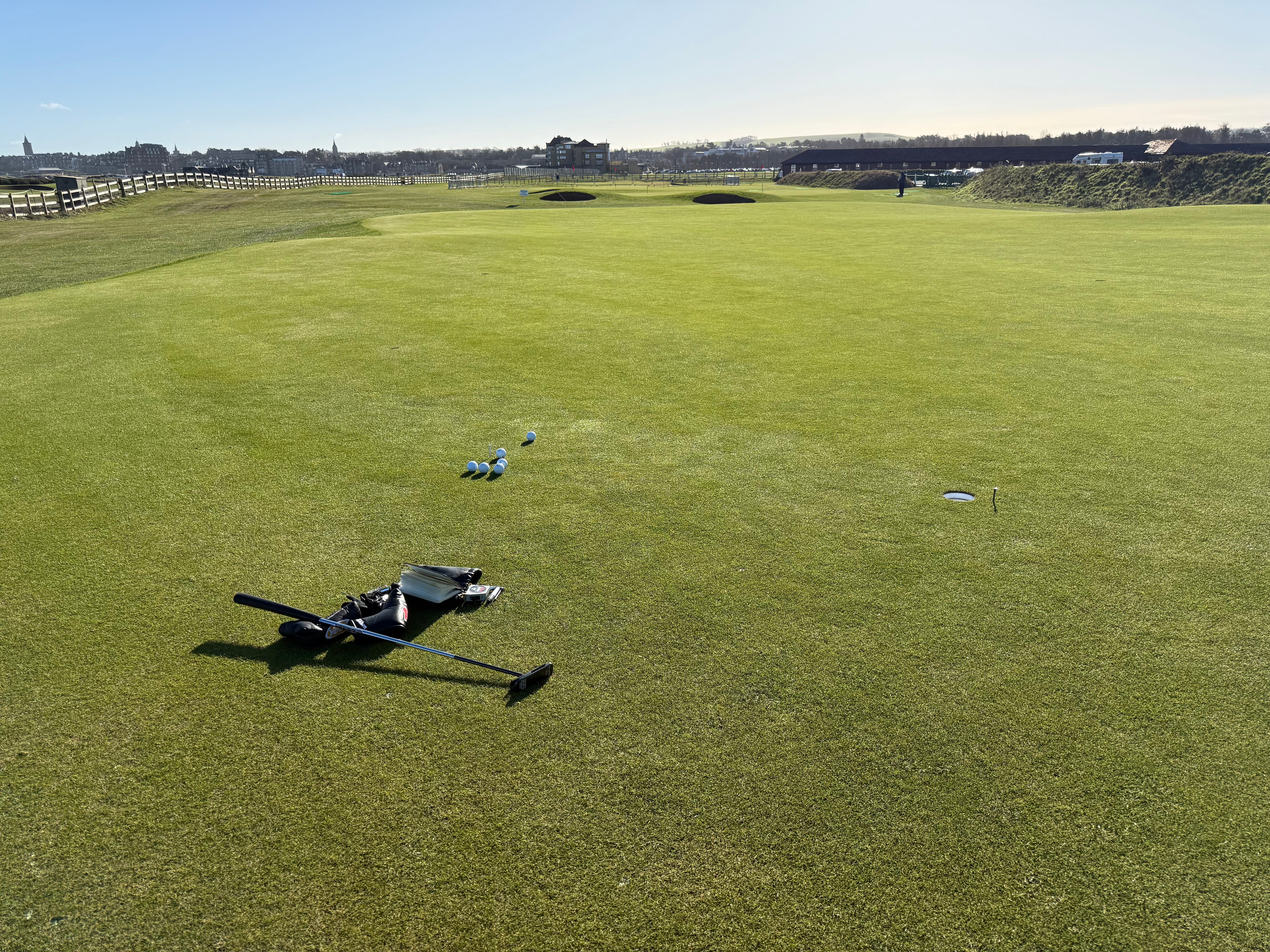 Despite the continued cold weather, it was another lovely day for testing. I pretty much had the green to myself, so I was able to take my time setting up the tests and also had my pick of hole locations.